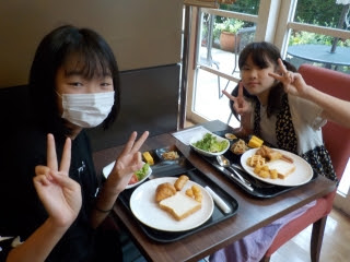 朝の朝食の様子 野菜やフルーツがいっぱい!おいしい朝食バイキングでした。